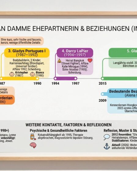 Du willst wissen, mit wem Jean-Claude Van Damme verheiratet war, wie es zu seinen Trennungen kam und welche Muster sich durch sein Privatleben ziehen? Hier findest du eine strukturierte, sachliche und vollständige Aufarbeitung – von der ersten Ehe 1980 bis zu seinen späteren Partnerschaften und öffentlichen Krisen. Die Daten und Einschätzungen beruhen auf den hier …