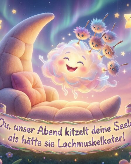 Du, unser Abend kitzelt deine Seele, als hätte sie Lachmuskelkater! Bild speichern Du erlebst den Abend, der deine Seele kichernd beflügelt. Bild speichern Du tanzt durch den magischen Abend, als wärst du der DJ deiner Seele. Bild speichern Du erlebst einen Abend, der Deine Seele vor Lachen Purzelbäume schlagen lässt. Bild speichern Du naschst den …